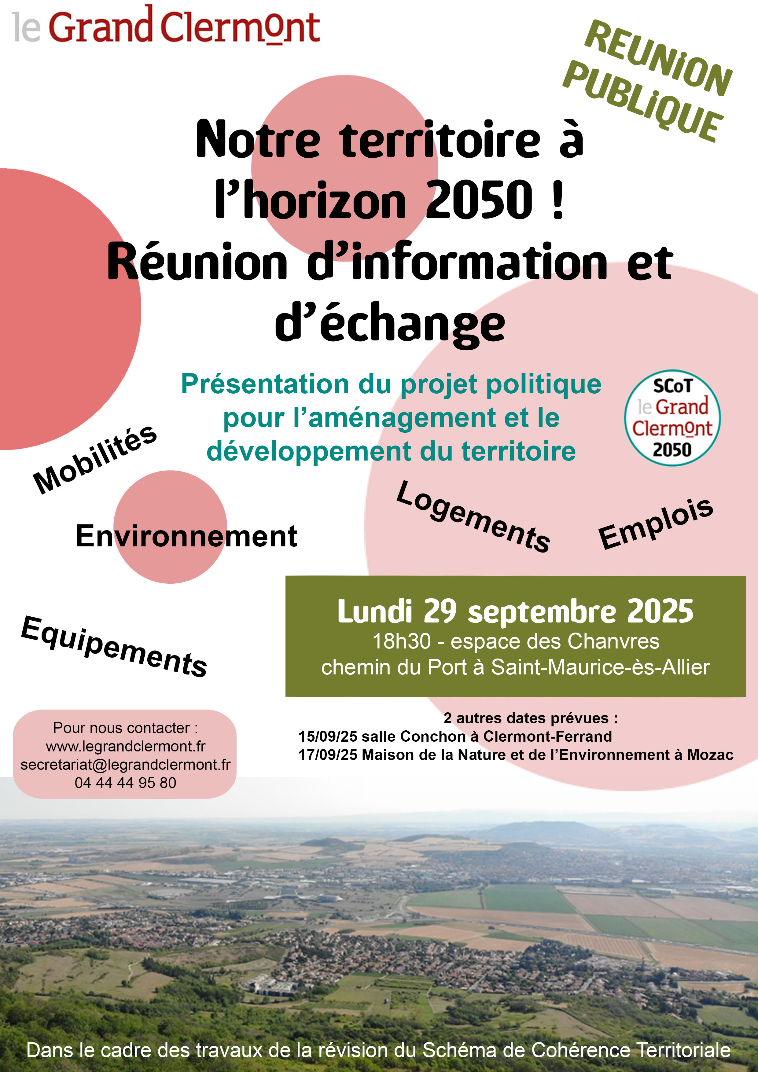 Présentation du projet politique pour l'aménagement et le développement du territoire du Grand Clermont - Réunion d'information et d'échange.